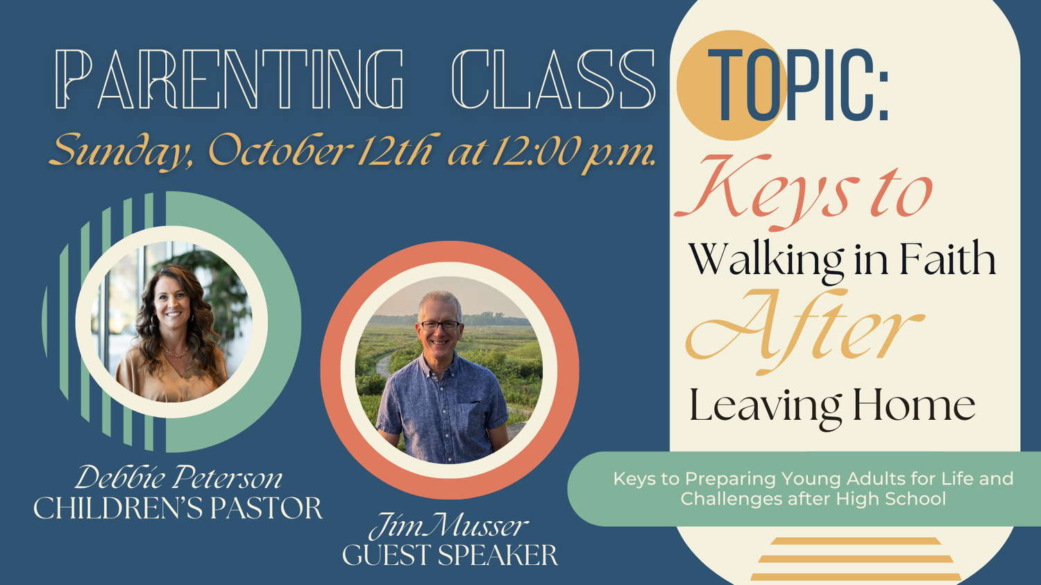 This class is for all parents who aim to prepare their children to have their own faith. Our kids will eventually go to college, trade school, or straight into the workforce, and we want to provide practical ways to help them face the challenges, mockings, and peer pressure that they will likely encounter in school and in their adult life.